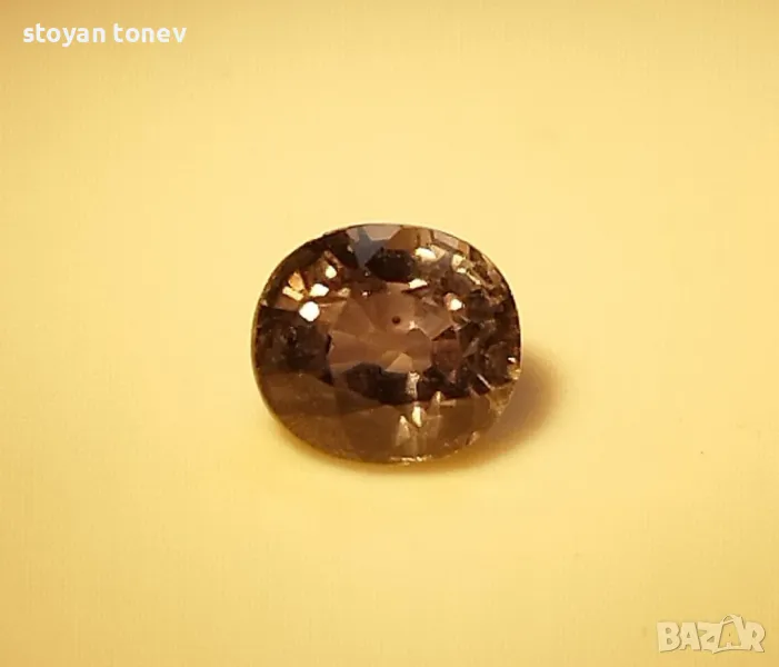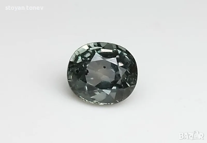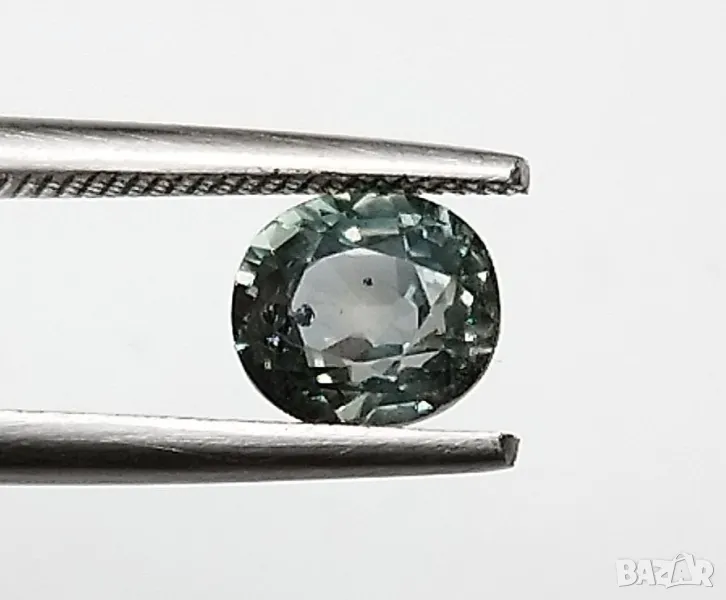 Естествен сапфир с тегло 1.10кт. и произход Танзания. Чистота VS2 с две малки видими включения. Цвета е зелен, като при жълто осветление се променя в лилав. Овал с размери: