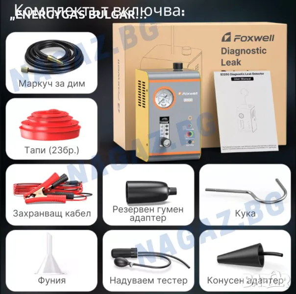 FOXWELL SD203 е усъвършенстван авто тестер (димна машина) за откриване на течове с въздух и дим!