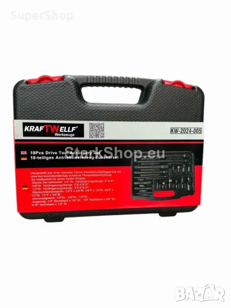 Комплект ударни преходници и удължения 18 части – 1/4″; 3/8″; 1/2″