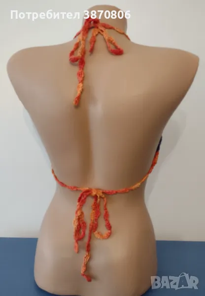 Има възможност бюстът да е по-събран чрез предните връзки. Чашките са големи, което го прави универсален за размери L, XL и дори по-голям.