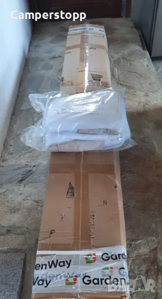 изработена от прахово боядисан алуминий. Покривът и завесите са ушити от полиестер. Добре е да се знае! Павилионът тежи приблизително. 30 кг. Дадените размери се измерват по контура на покрива.