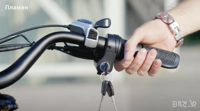 Светлини: предни + задни светлини, мигачи, клаксон.