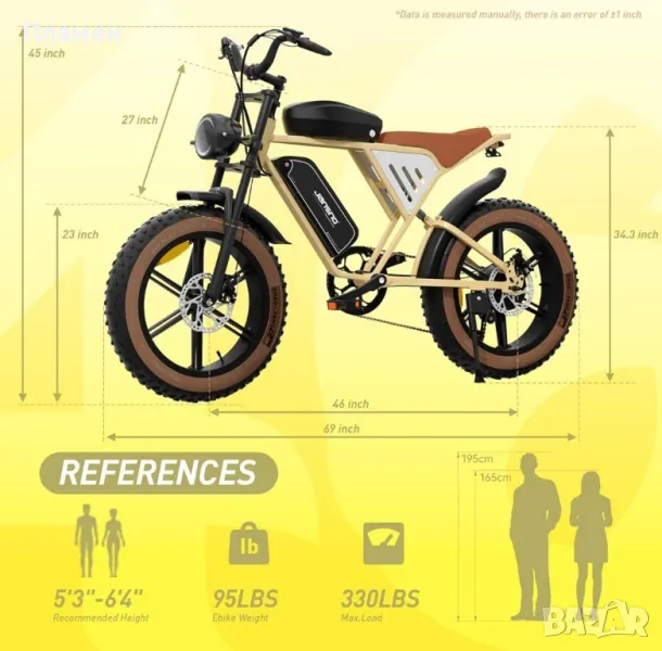 Максимална скорост: 48 км.ч (под 65 кг.)