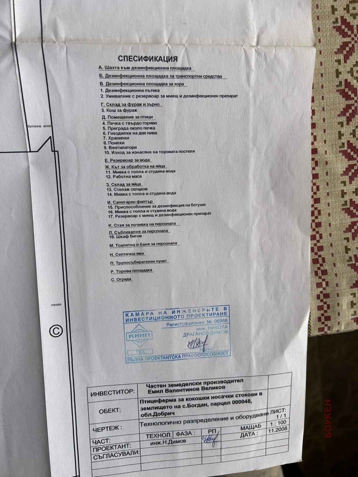 Проектът е одобрен и изготвен от инж. Н.Д.Д. Камара на инженерите в инвестиционното проектиране