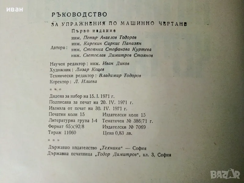 Ръководство за упражнения по машинно чертане - П.Ангелов.К.Папазян,С.Куртева,С.Стоянов - 1971г. → Обява 50240256