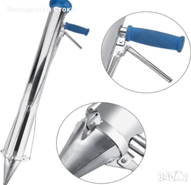 Много удобно приспособление за работа, без навеждания, клякане и пълзене в редовете. Използва се за засаждане на картофи, домати, лук, царевица, патладжан, зеле, краставици, фъстъци, ягоди, тютюн, чесън и др. Машината не поврежда разсадата!