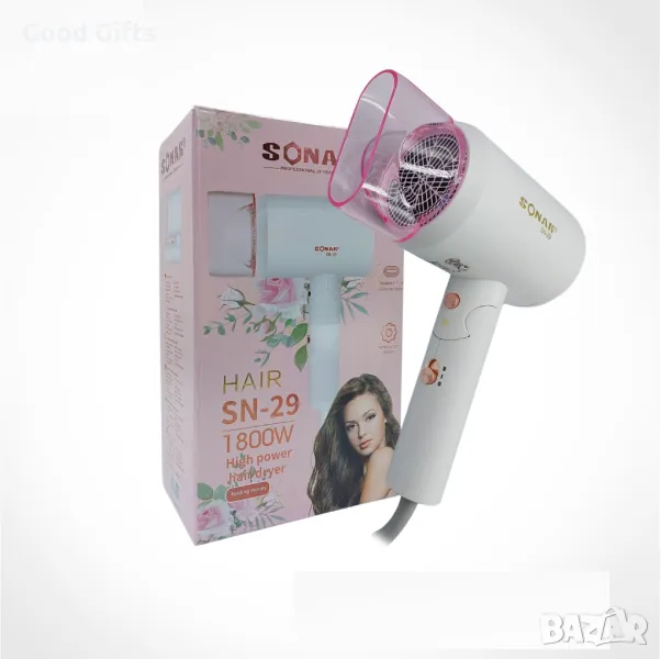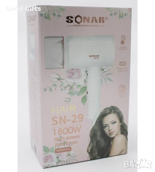 Мощният и компактен сгъваем Сешоар за коса SONAR SN-29 ви позволява бързо и ефективно сушене на вашата коса и помага за достигане на по-голям обем на прическата!