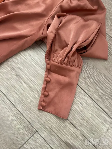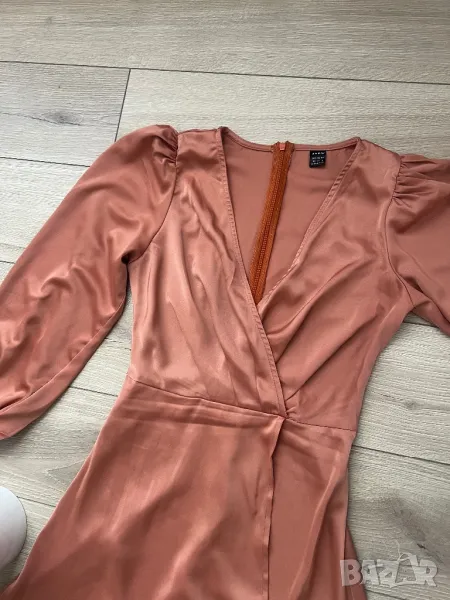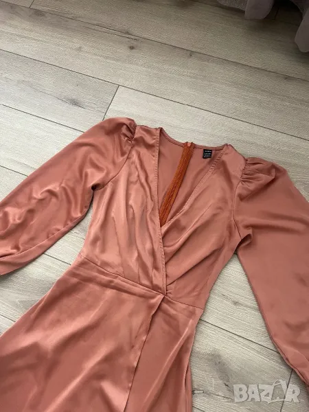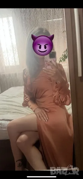 Обличана само за няколко часа. Цветът е светло кафяв, материята е плътен сатен. Много красива.