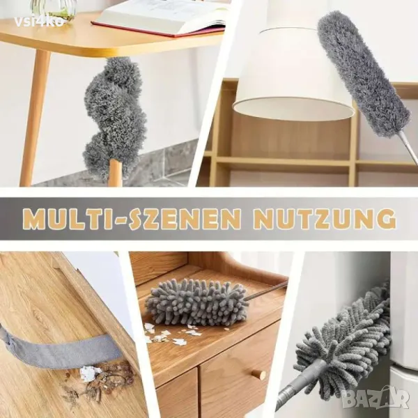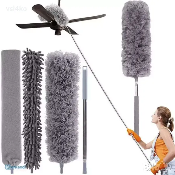 Този многофункционален комплект за почистване включва 5 различни инструмента, които ще използват почистването на дома Ви лесно и ефективно. Изработен е от висококачествени материали, които гарантират дълъг живот и удобство при работа. Комплектът е идеален за премахване на прах от труднодостъпни места, мебели, ъгли, тавани и други повърхности.