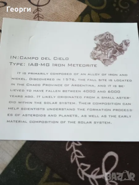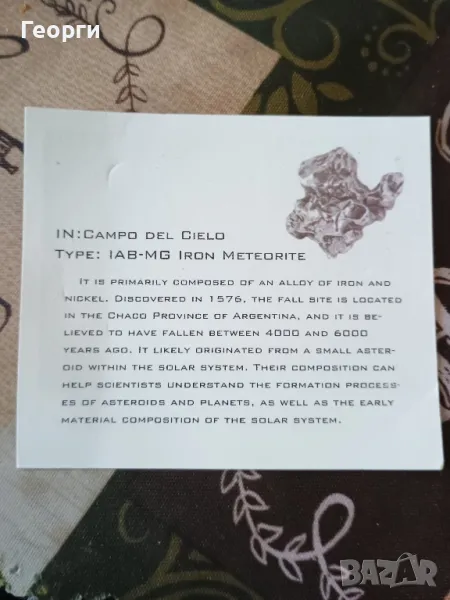 Натурален железен метеорит-2, снимка 1 - Антикварни и старинни предмети - 50241529 Натурален железен метеорит-2, снимка 2 - Антикварни и старинни предмети - 50241529 Натурален железен метеорит-2, снимка 3 - Антикварни и старинни предмети - 50241529 Натурален железен метеорит-2, снимка 4 - Антикварни и старинни предмети - 50241529 Натурален железен метеорит-2, снимка 5 - Антикварни и старинни предмети - 50241529 Натурален железен метеорит-2, снимка 6 - Антикварни и старинни предмети - 50241529 1/6