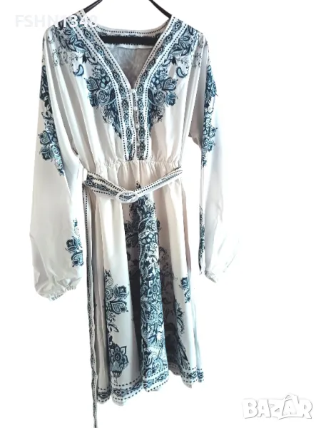 Елегантна рокля с колан ластик на талията, дължина 100см,свободен модел, подходящ за Л, ХЛ.
