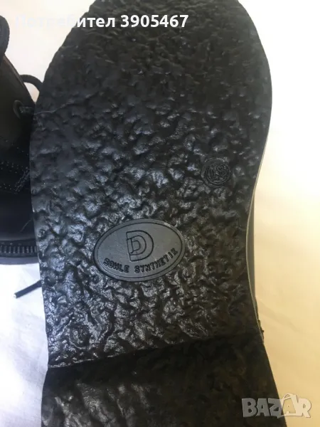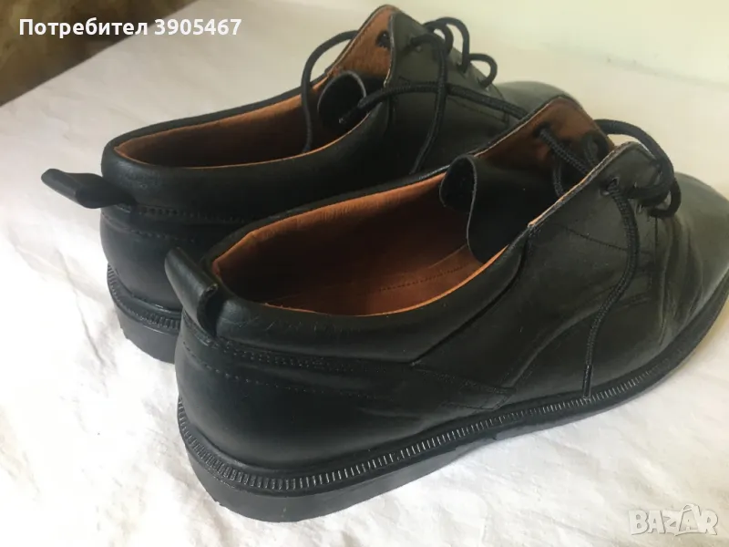Обувките са от естествена кожа, със специална, "дишаща" подметка. Черни. Маркирани са от вътре с №14, което по едни таблици е номер 48,5, а по други е №49. Без забележки.