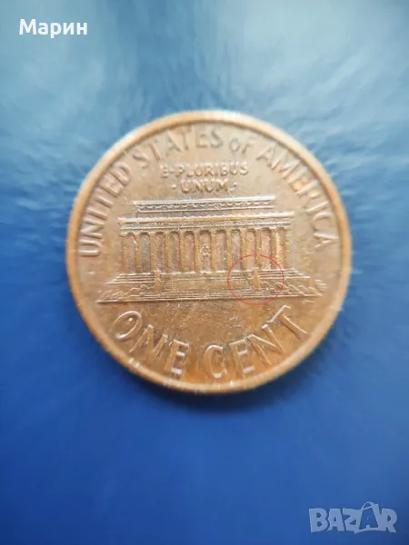 1- Монетата ONE CENT 1991 г. е с три дефекта: