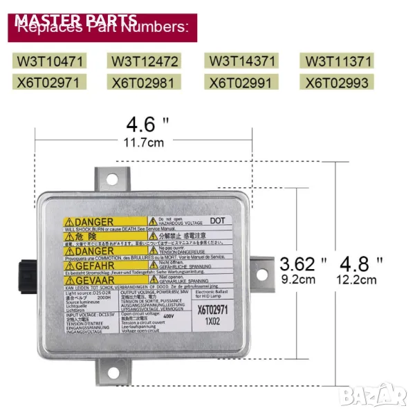 Предлагаме чисто нов ксенонов баласт с оригинален OE номер W3T10471. Този баласт е съвместим с множество модели на Honda, Acura, Mazda, Mitsubishi и други, осигурявайки надеждна работа на вашата ксенонова осветителна система.