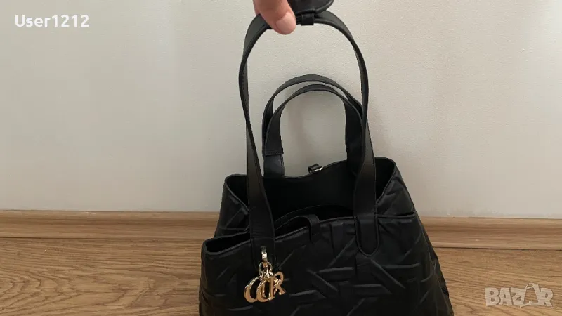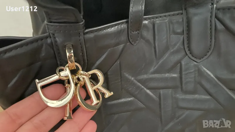 Дамска чанта Диор , от естествена кожа , среден размер . С всички абревиатури и лога навсякъде . Без забележки и следи от носене . Дръжките са къси , но се разкопчават и стават и дълги .