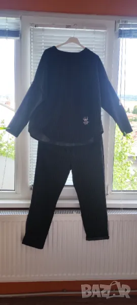 Дамски спортно/елегантен костюм от Италия – блуза и панталон с лъскав ефект; 2XL÷ 3XL → Обява 50242642