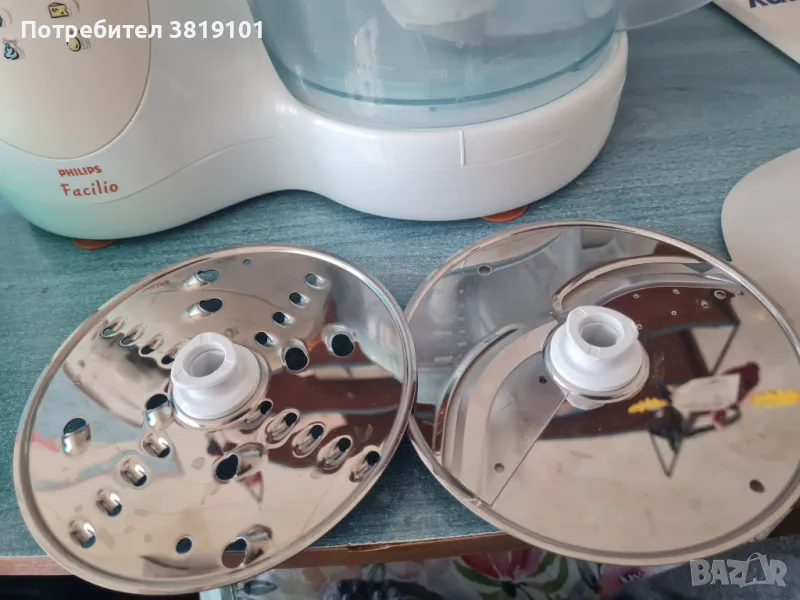 Робот на Филипс с нож и две приставки,нормални следи от употреба.