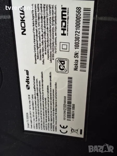 Nokia Smart TV 5000A for 50inc DISPLAY VES500QNZP-N4-Z03 борда е гарантирано работещ Демонтиран от Телевизор Nokia модел