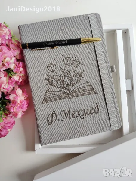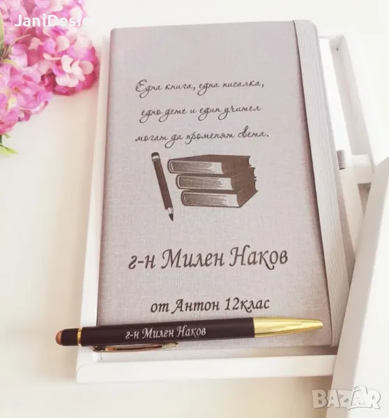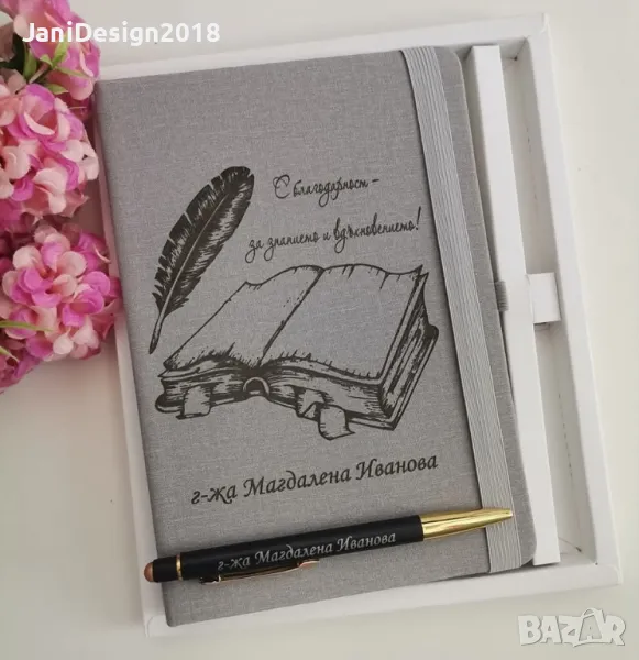 подаръчен комплект за учител гравирани тефтер и химикал → Обява 50243564
