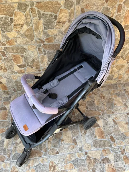 лятна количка с различни екстри и модерен дизайн. Количката има широк, сгъваем сенник, който е с допълнителна секция за максимално предпазване от слънчевите лъчи. Облегалката е многопозиционна и се регулира до напълно легнало положение. За удобство е и с подвижна поставка за крачета, която вие регулирате спрямо ръста на детето. Грифът на количката може да се маха, което улеснява и родителя. Има и голям кош, който ще побере много багаж по време на разходка. За безопасността на детето ви ще се погрижи и 5-точковият предпазен колан. Количката е подходяща за деца от 0 месеца и деца с тегло до 15 кг. Сгъването й е улеснено и става само с една ръка, а на задните колела има двойна спирачка. За ваше улеснение има дръжка, с която може да пренасяте количката в сгънато състояние.