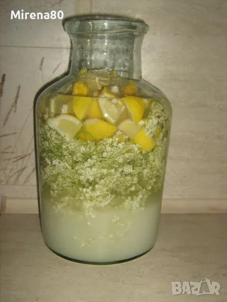 Съдържа цвят от бъз, бяла захар, лимони и щипка лимонена киселина.