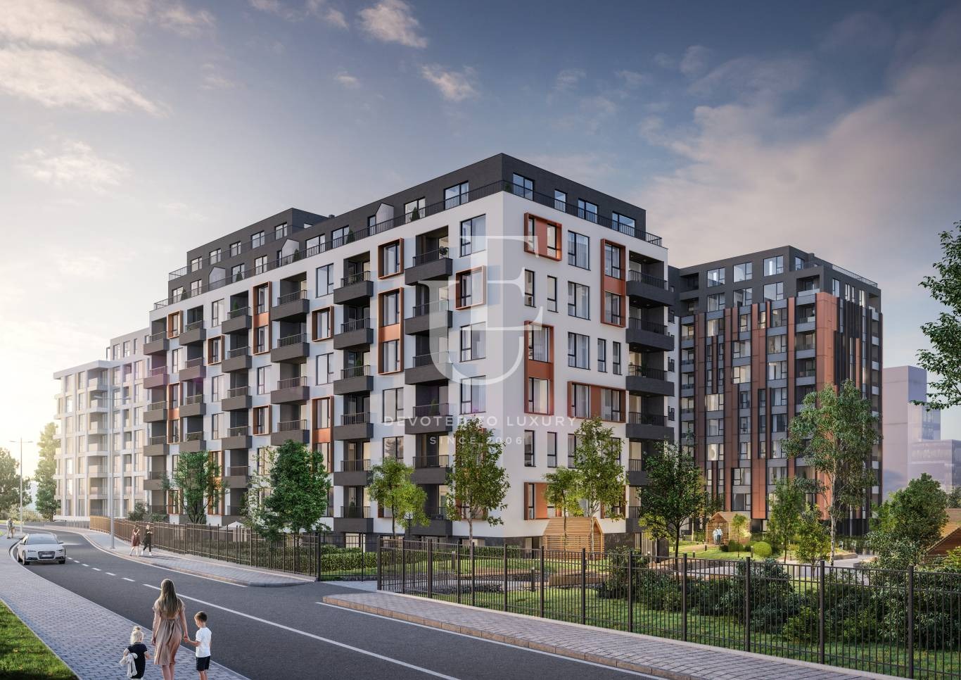 Сградата се отличава с модерна архитектура, висококачествени материали и иновативни технологии, които гарантират тиха, сигурна и енергийно ефективна среда. Всеки детайл е внимателно обмислен, за да отговаря на съвременните изисквания за комфортен и естетичен начин на живот.