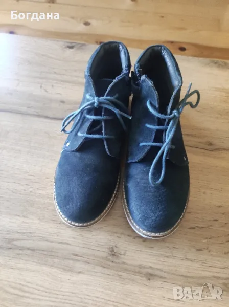 Продавам официални обувки за деца в синьо,на бук ,закупени от Англия , носени веднъж за повод ,номер 34 ,при интерес ще дам стелка в см
