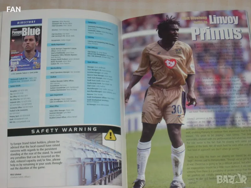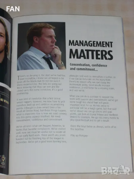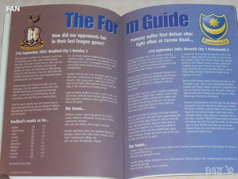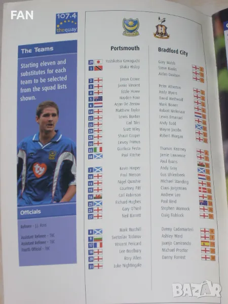 Портсмут - Брадфорд Сити оригинална английска футболна програма от 1 Дивизия със Светослав Тодоров → Обява 50245005