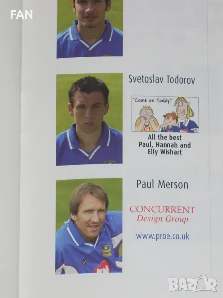 Портсмут - Брадфорд Сити оригинална английска футболна програма от 1 Дивизия със Светослав Тодоров