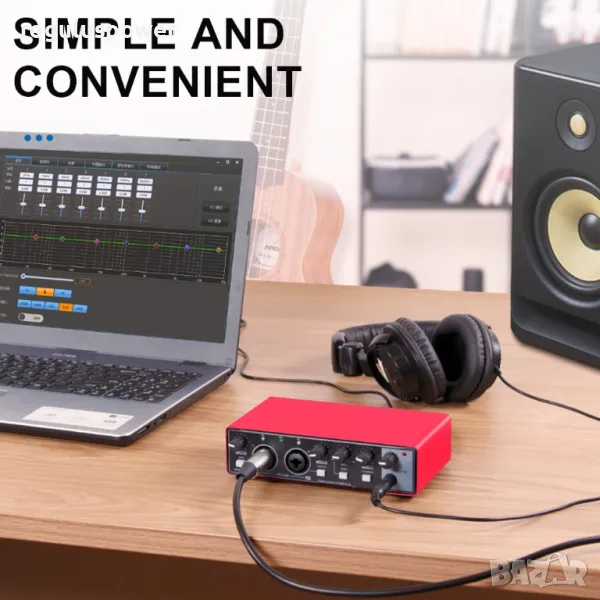 Не е необходимо изтегляне на драйвер. USB аудио интерфейсът има ляв и десен канален вход, може да се свързва едновременно с микрофони и инструменти за музикално производство и може да се възпроизвежда на компютъра едновременно.