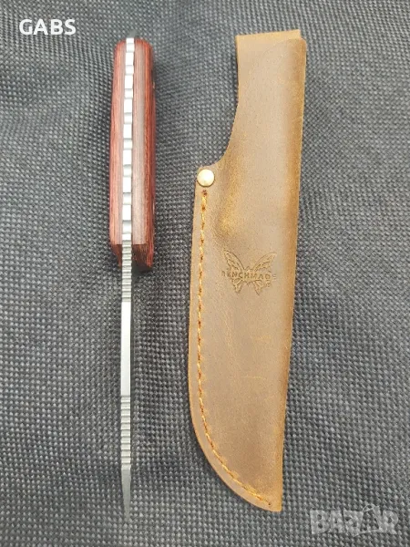 ловен нож с фиксирано острие Drop-point, предназначен за прецизно рязане. Фултанг с дръжка от стабилизирано дърво,изработен от висококачествена стомана и сатенирано покритие.
