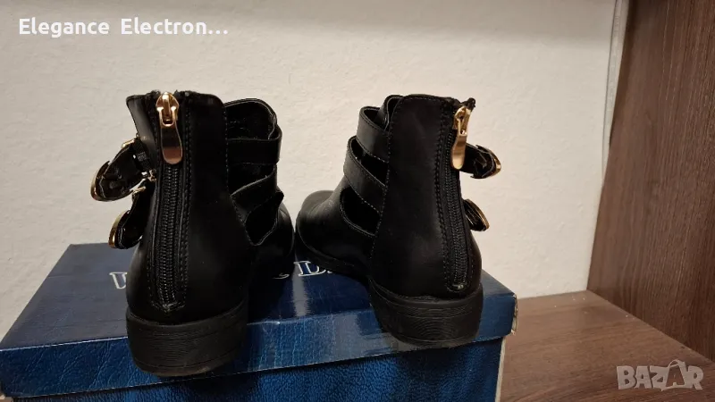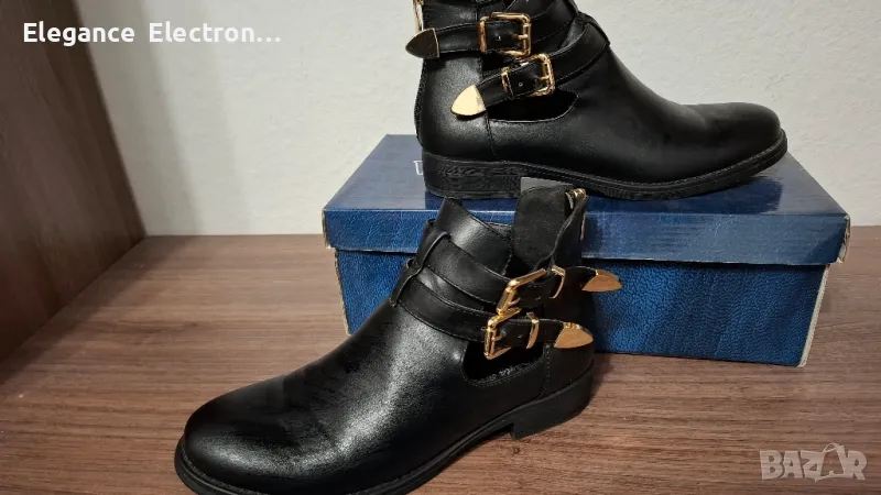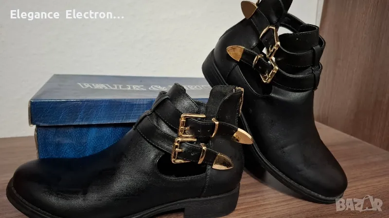 Продавам почти нови дамски обувки Kayla Ohoe, номер 38, носени буквално веднъж. Стелка с дължина 24.5 см. Черен цвят с елегантни златисти метални катарами и стилен дизайн с изрязани елементи. Подходящи както за ежедневие, така и за по-елегантен аутфит.