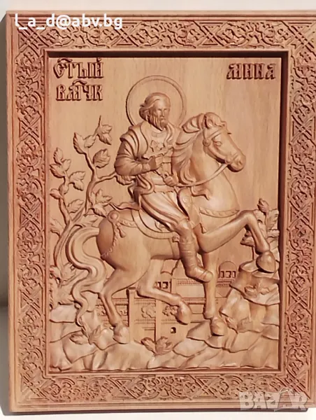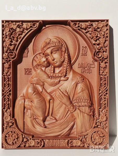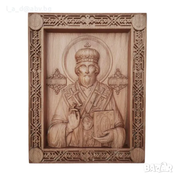 Дърворезба върху парен бук, налична в два основни размера или по ваше желание, за да отговори на вашите нужди. Обработена с натурално био масло и пчелен восък, иконата не само изглежда прекрасно, но и е изключително качествена. Изберете между два размера, а ако искате нещо уникално, можем да я изработим специално за вас.