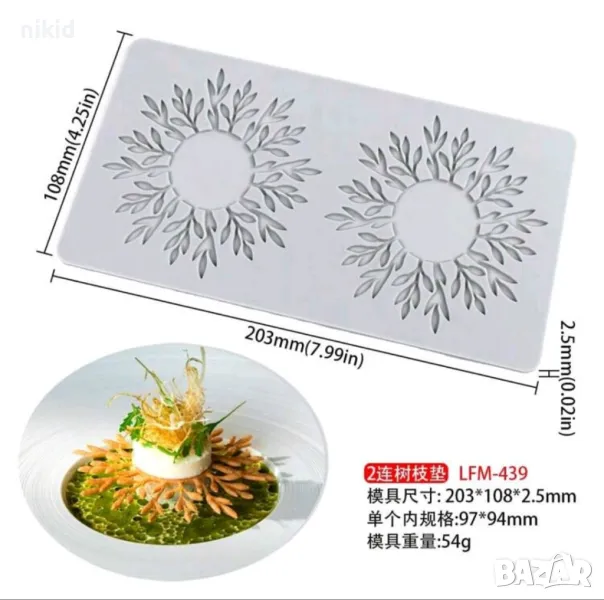 кръг подложка венец обръч с листа силиконов молд форма дантела основа декор кант → Обява 50247949