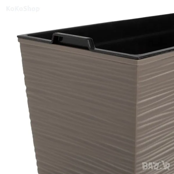 кашпа, с нестандартна правоъгълна форма. Подходяща за балкон, тераса, градина или интериор. Изработена от висококачествена пластмаса, устойчива на атмосферни влияния и UV лъчи.