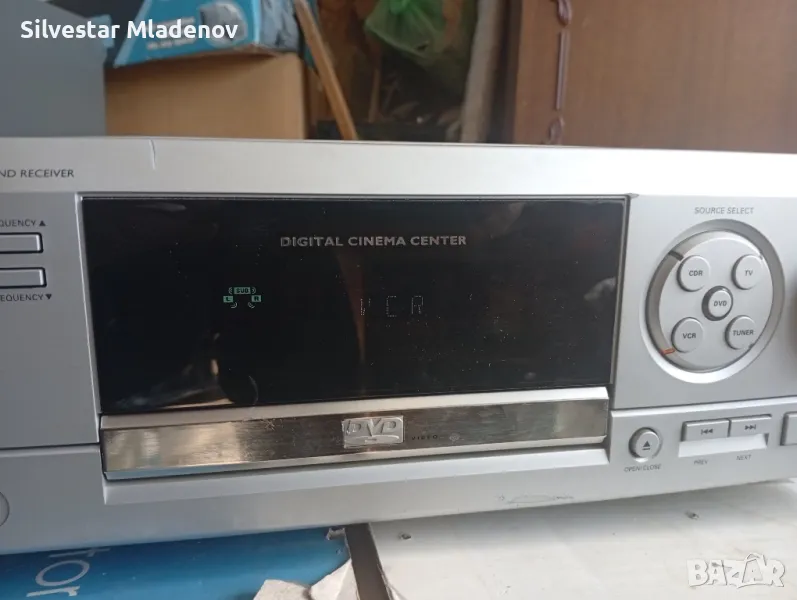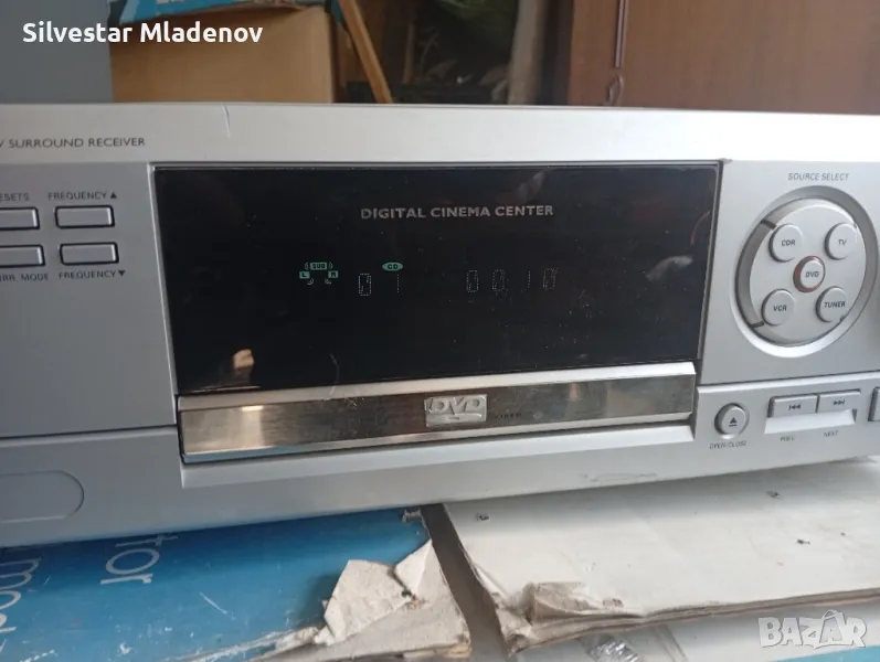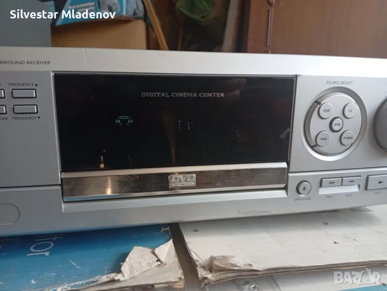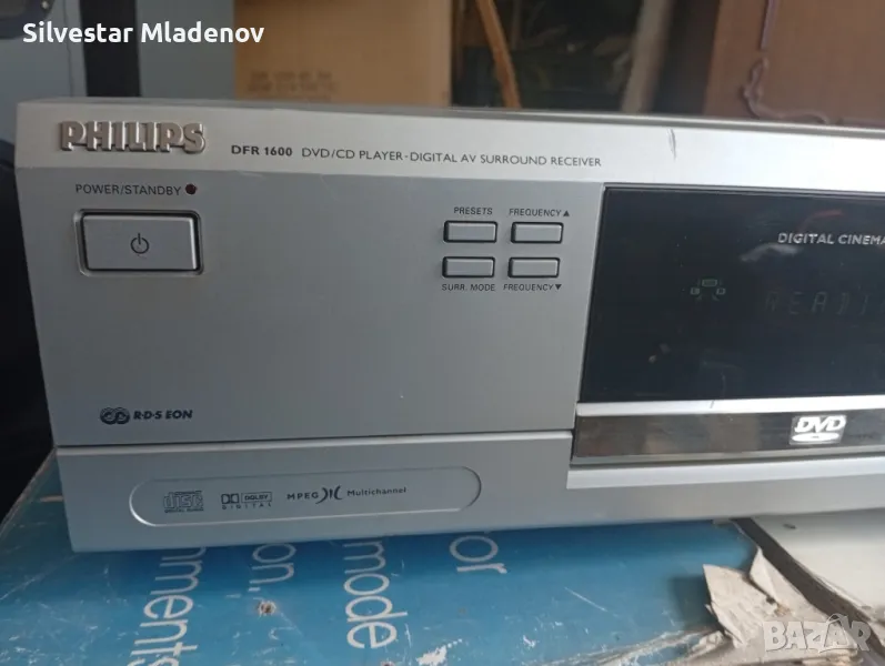 Ресивър за домашно кино Philips DFR1600 с DVD/CD плейър. С добър външен вид и отлично функциониращ. Солидна изработка (около 12кг) с мощен тороидален захранващ трансформатор. Тунера поддържа RDS. Има изход за активен субуфер. Изходна мощност в режим кино 5x70w и 2x70w в стерео режим