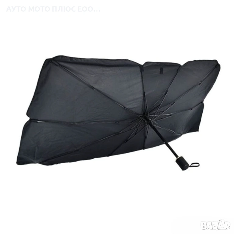 Универсален сенник за предно стъкло на автомобил тип „чадър“, проектиран за бързо и лесно поставяне и сгъване.