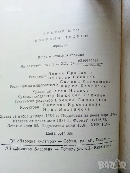 Избрани творби - Виктор Юго - 1984г. → Обява 50251782