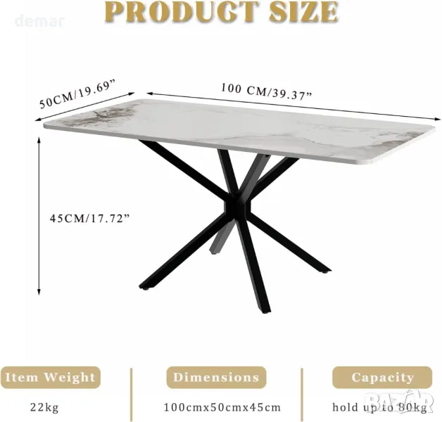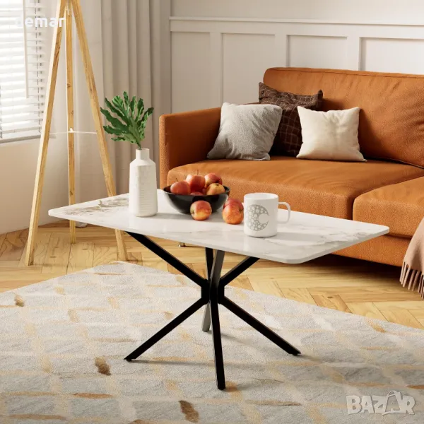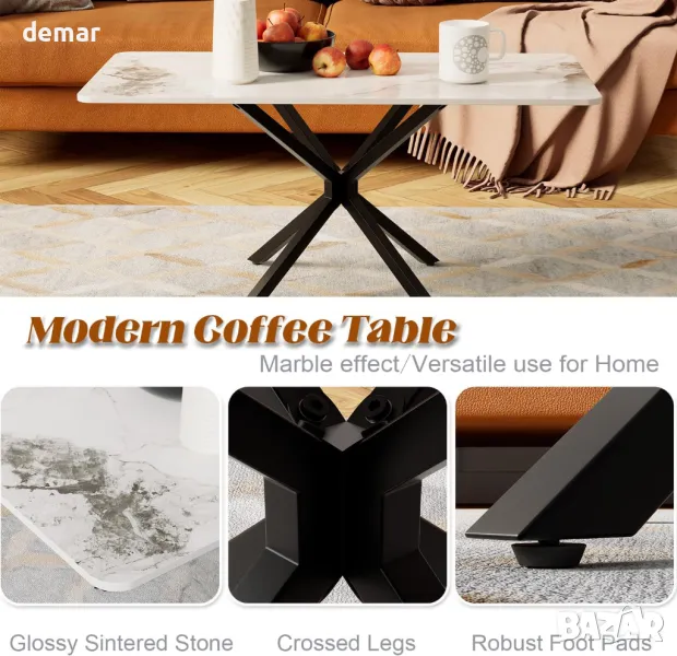 С елегантен плот от синтерован камък с лъскаво, гладко покритие, тази масичка за кафе е устойчива на петна, топлина, драскотини и износване. Просторната ѝ правоъгълна повърхност предлага място за декор, книги или напитки, а здравата рамка с кръстосани елементи осигурява дълготрайна стабилност. Минималистичният дизайн и неутралните тонове подхождат на различни интериори, от модерен и индустриален до скандинавски и стилен. Идеална за дневни, офиси или салони, тя се сглобява бързо с ясни инструкции и включени крепежни елементи.