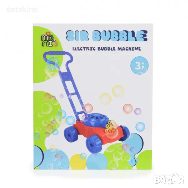 Подарете на детето си часове забавление на открито с тази весела косачка за сапунени балони Bubble Sir! Само с няколко стъпки напред, тя започва да произвежда множество балончета, докато имитира реална косачка с шум и въртящи се елементи. Подходяща е за разходки в парка, двора или на плажа. Играчката е лека, лесна за управление и насърчава движението и играта на открито.