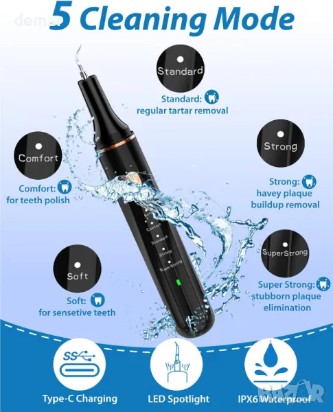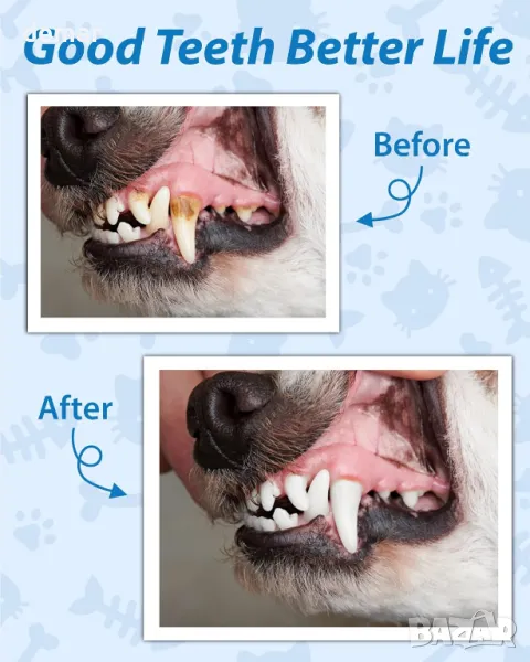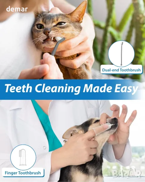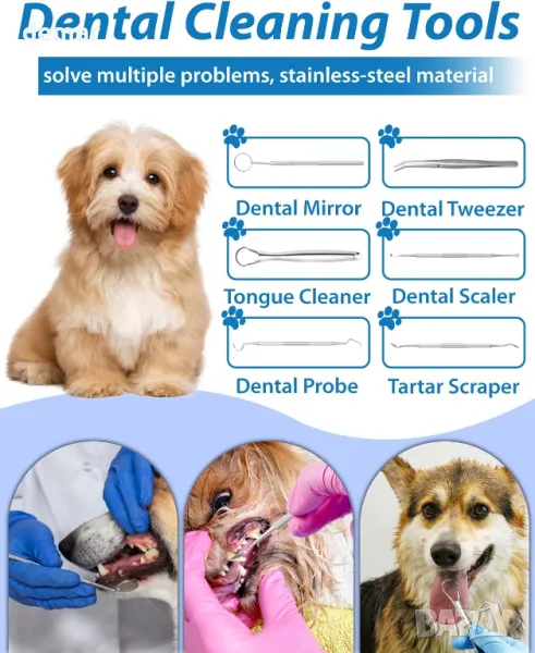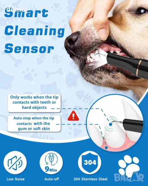Този инструмент за грижа за зъбите на домашни любимци е снабден с интелигентна сензорна технология, която разпознава повърхностите на зъбите и спира при контакт с венците за безопасно и нежно почистване, като се изключва автоматично след 9 минути. Включва вградена ултра мека LED светлина за подобряване на видимостта и намаляване на напрежението по време на употреба. Комплектът се предлага с 14 професионални инструмента за цялостно премахване на плака и зъбен камък. С пет регулируеми режима на почистване, той отговаря на редица дентални нужди и е идеален за постепенна адаптация на домашния любимец. Проектиран с водоустойчивост IPX6 и бързо зареждане чрез USB Type-C, той е удобен, издръжлив и лесен за поддръжка.