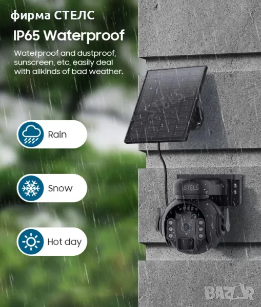 автономна работа без нужда от допълнително захранване. Камерата е с IP65