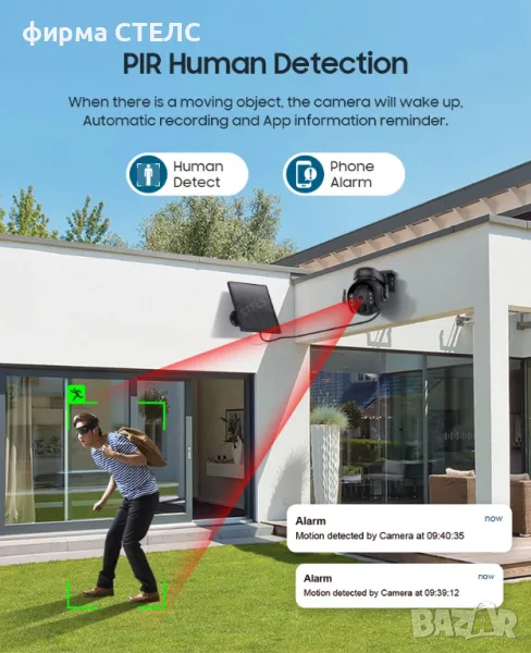 осигурявайки ясна картина и детайлни записи. Благодарение на PIR сензора за