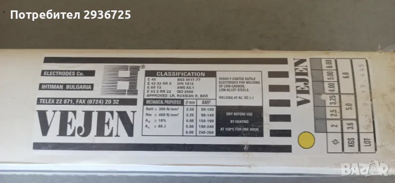 Електроди 3,25х350mm - 5kg, снимка 1 - Други инструменти - 50254403 Електроди 3,25х350mm - 5kg, снимка 2 - Други инструменти - 50254403 1/2