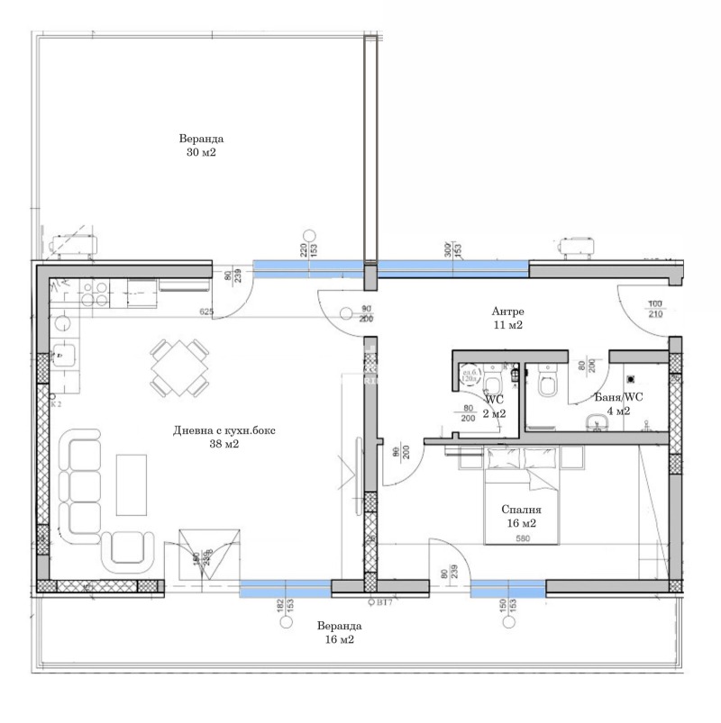 Оферта 66963: Предлагаме Ви двустаен апартамент с в нова малка сграда - тип фамилна къща, с модерна визия, разположена в тих и спокоен квартал, в близост до всички основни комуникации. Жилището се състои от просторна дневна - 39кв.м. с трапезария и кухненски бокс и излаз на веранда, голяма самостоятелна спалня 16кв.м., баня с тоалетна, втора тоалетна, широко светло антре и още една веранда. Сградата е проектирана с концепцията да създаде максимален комфорт, уют и спокойна среда на своите нови обитатели след забързаното ежедневие. Кооперацията се строи от реномирана фирма с множество готови сгради. Изпълнението е с висококачествени материали, отговарящи на всички съвременни изисквания: червена тухла, 6 -камерна ПВЦ дограма с дървесен цвят, топло и хидро изолация - 10см., масивна входна блиндирана врата. Общите части и терасите ще са луксозно завършени с гранит и иноксови парапети. Сградата е се намира в близост до парк, детска градина, училище и удобен транспорт към централна градска част. Възможност за закупуване на паркоместа във вътрешния двор на цени от 10000 . Разсрочено плащане в рамките на строителството. Осигурено банково финансиране на преференциални условия за клиенти на агенцията!!! Приложените снимки са от друга готова сграда на строителната фирма.ВИЖТЕ ОЩЕ ИЗГОДНИ ОФЕРТИ НА https://www.kondorimoti.com/ С ЕЖЕДНЕВНА АКТУАЛИЗАЦИЯ!