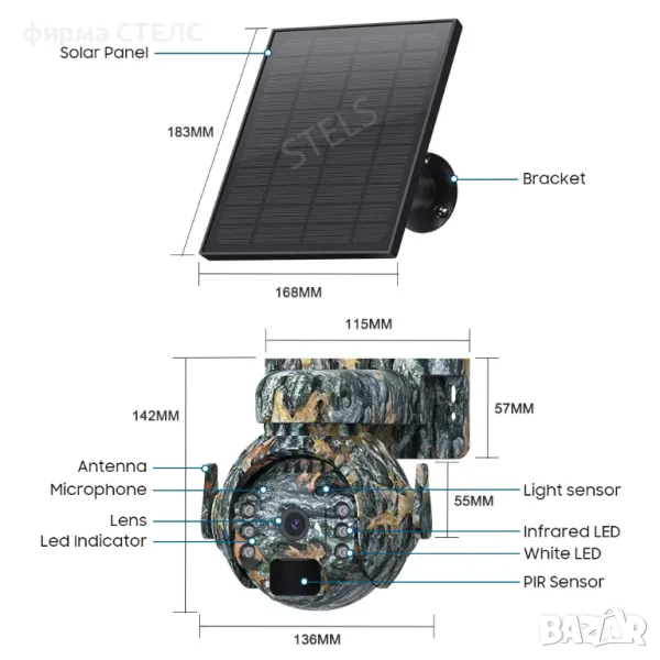 Соларна Wi-Fi камера за наблюдение STELS Z7X с висока 3MP