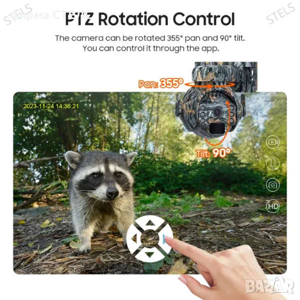 камуфлажен. Камерата е оборудвана с интелигентен PIR сензор за движение,
