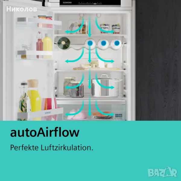 Искате ли да запазите храната по-свежа за по-дълго време на всички нива на вашия хладилник? Това е много лесно с auto Airflow: Системата циркулира равномерно въздуха в хладилника и по този начин осигурява постоянна температура на всички нива. Храната се охлажда по-бързо и остава вкусна и свежа за по-дълго време.