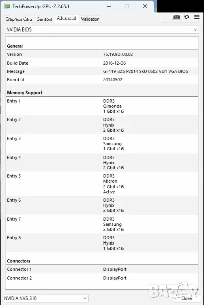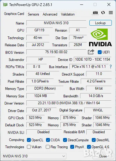 Model: NVidia Quadro NVS 310 LP