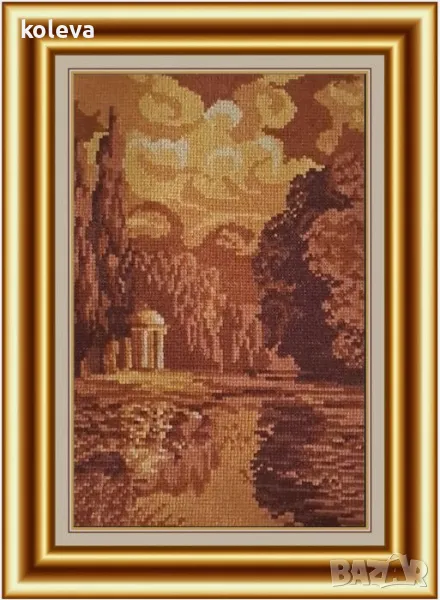 сцена, изпълнена в топли нюанси на кафяво и златисто, която пресъздава тиха